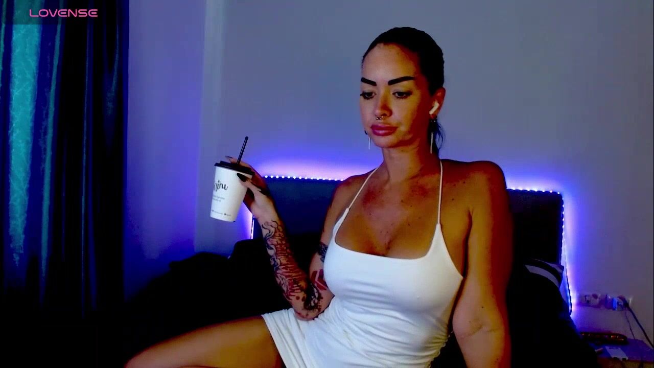 amber_tasty Brunette with tattoos sweetly chatting and teasing in a dress in front of the camera