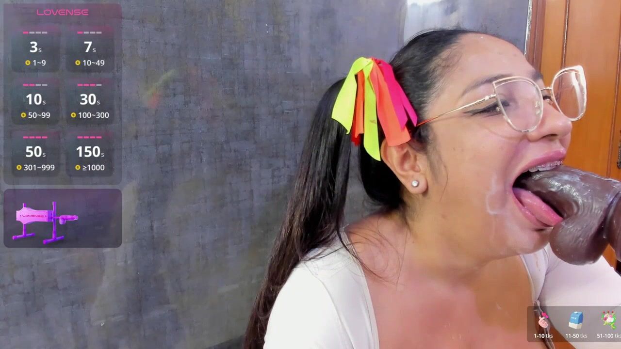 sweetyblowjob1 A young girl is sweet-talking and sucking a rubber cock down her throat on camera.