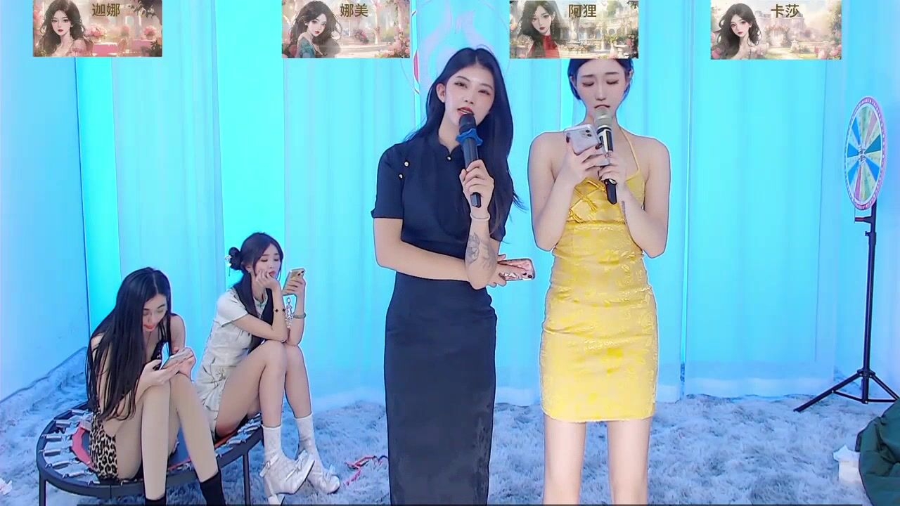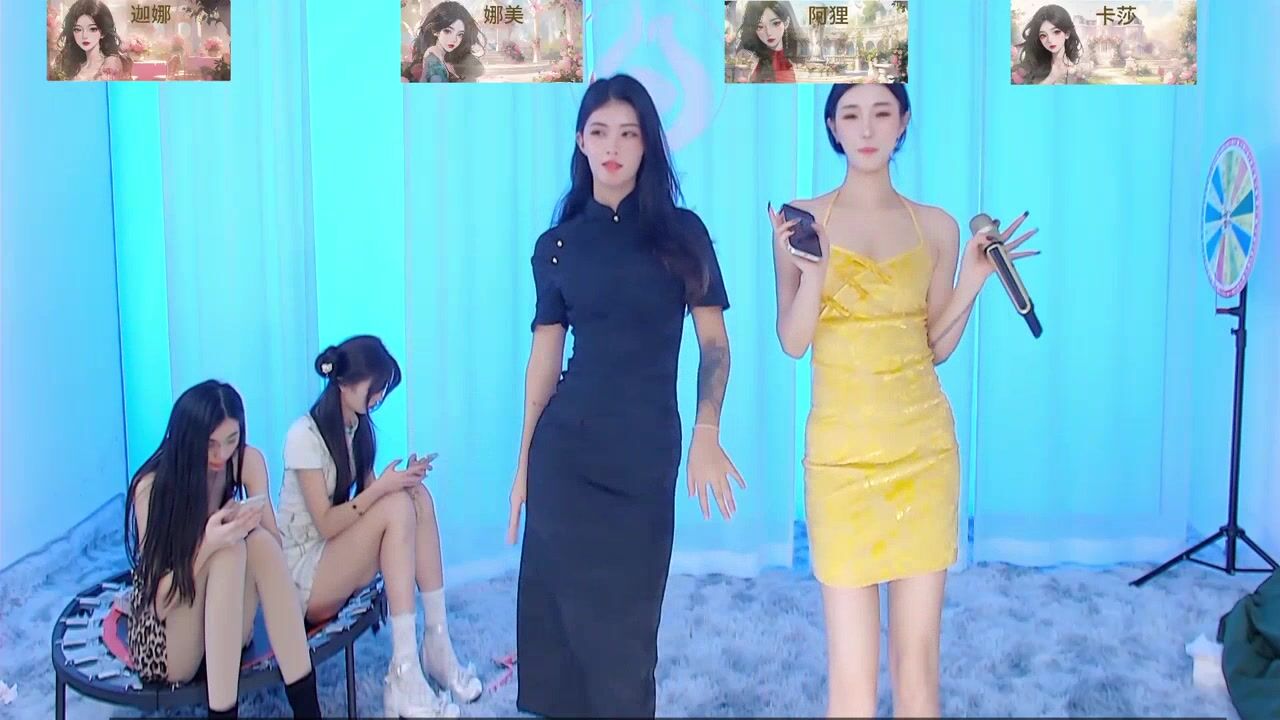 SS119 - Four Asian girls sweetly chatting and teasing in front of the camera.