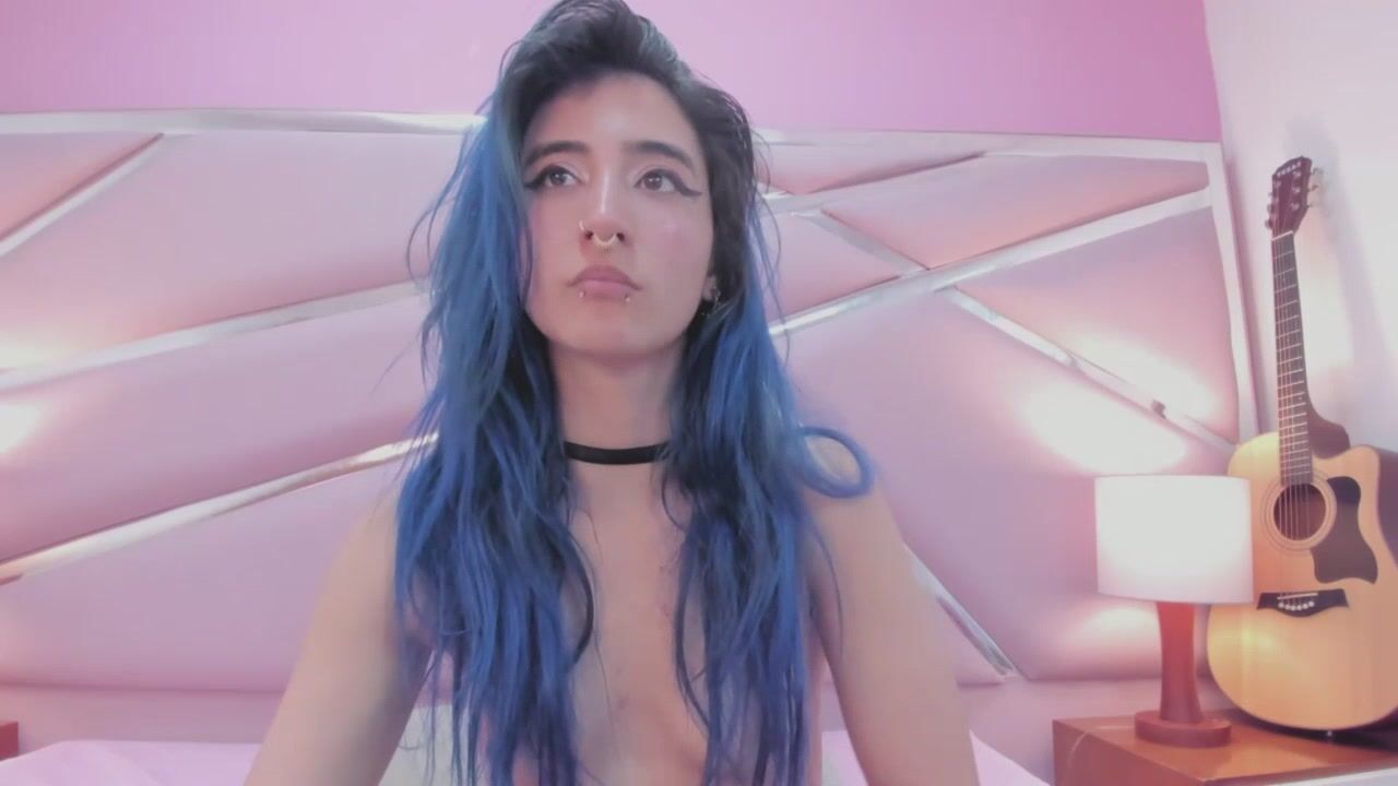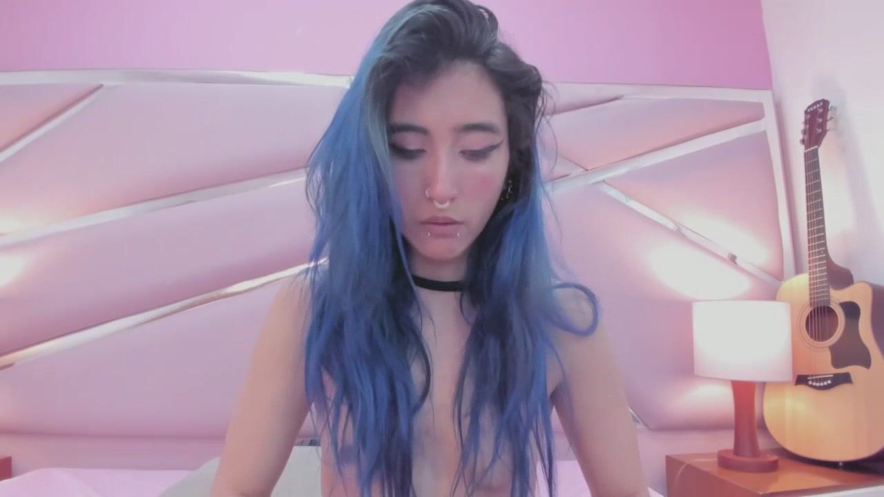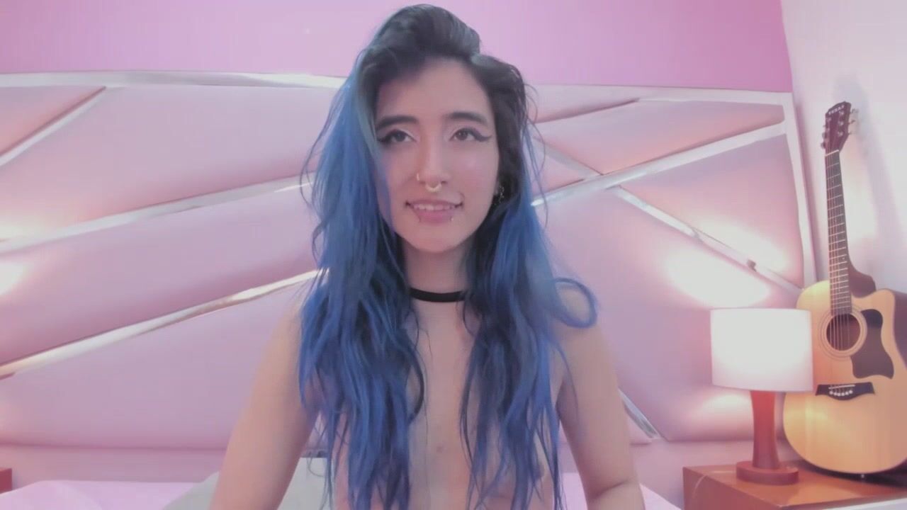 Lunapage Young babe with blue hair shows her small tits and chatting sweetly with the chat room