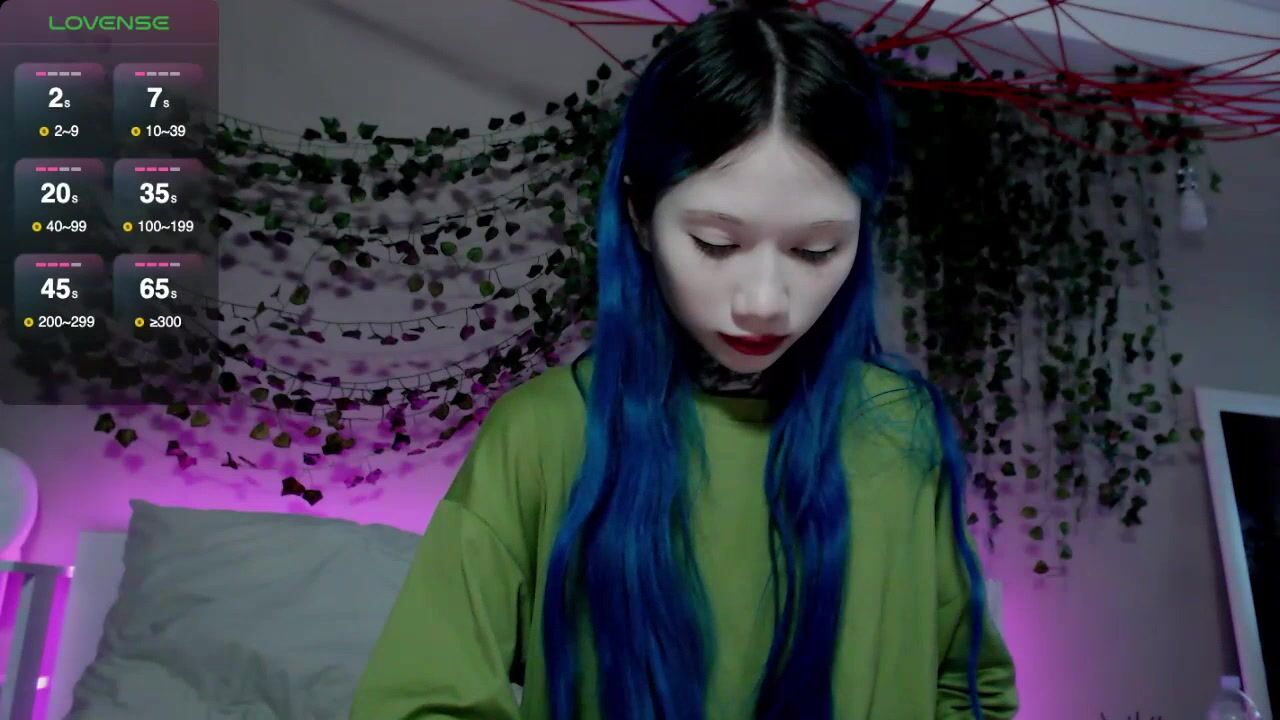 le_chan - Молодая женщина с синими волосами мило общается и не раздевается перед камерой.