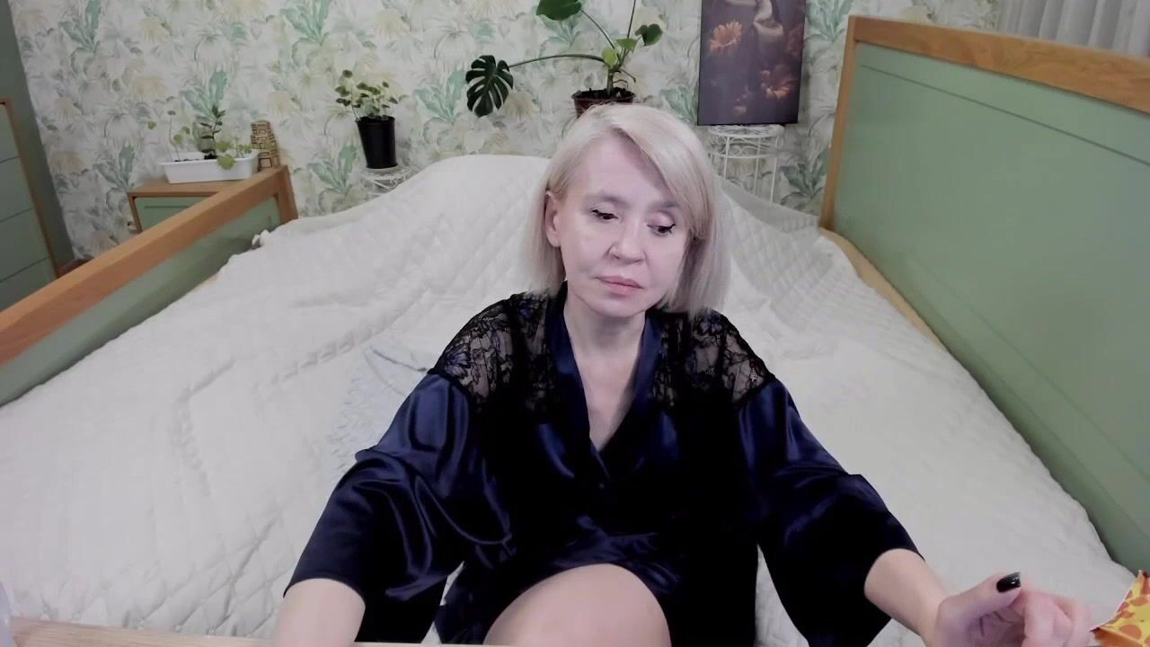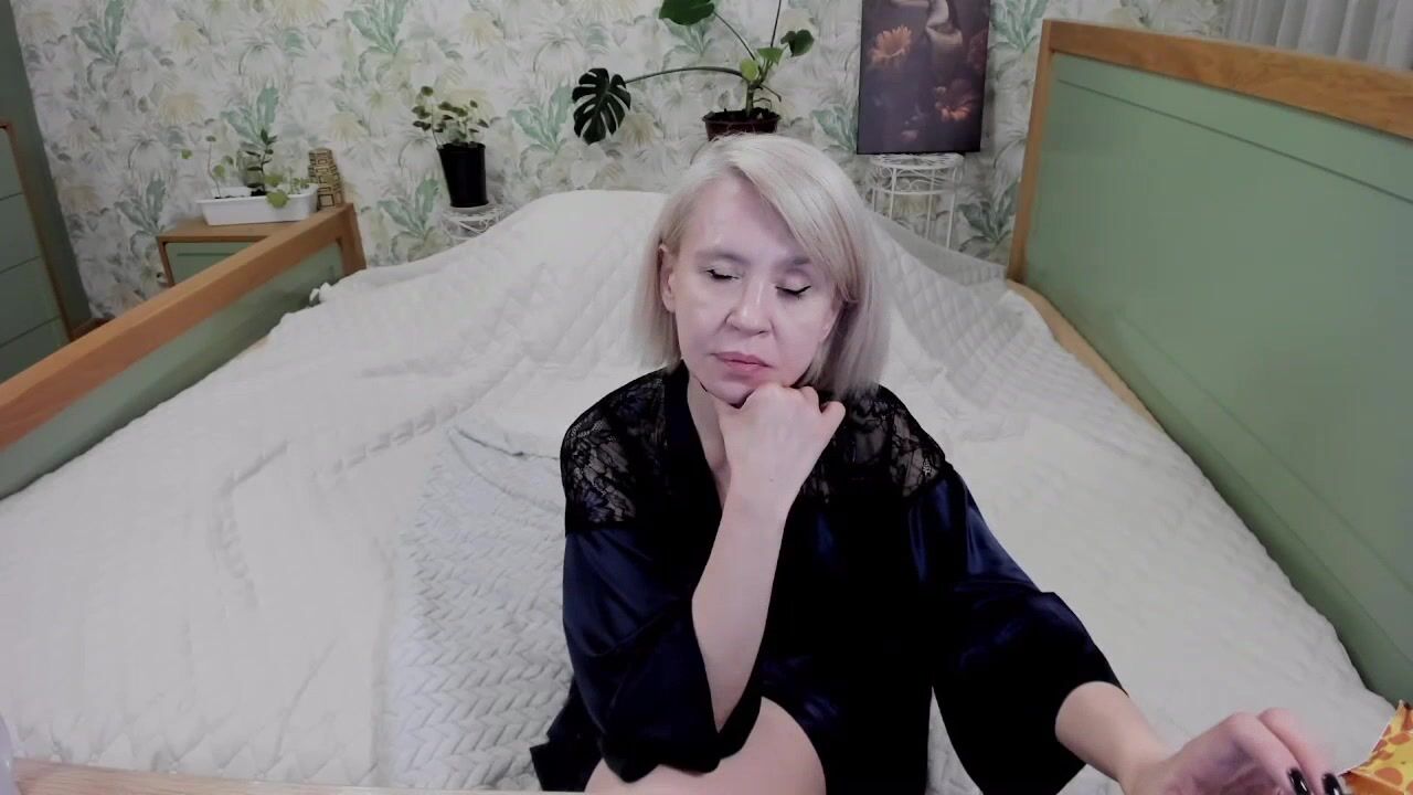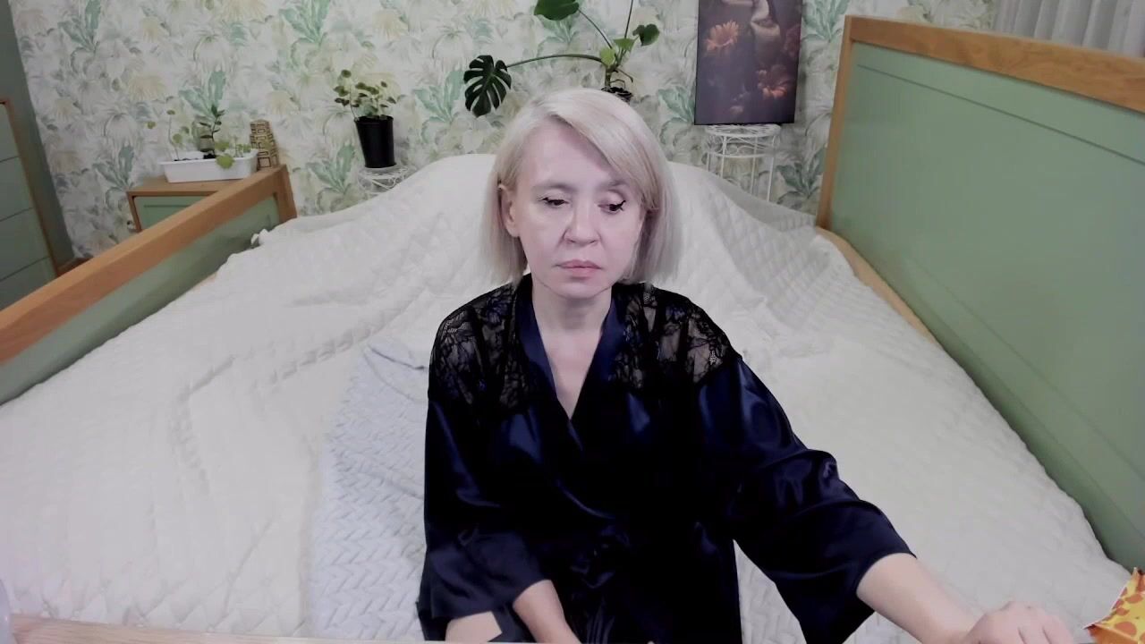 aminalive Milf in a beautiful robe sits on the bed, chats sweetly and teases in front of the camera