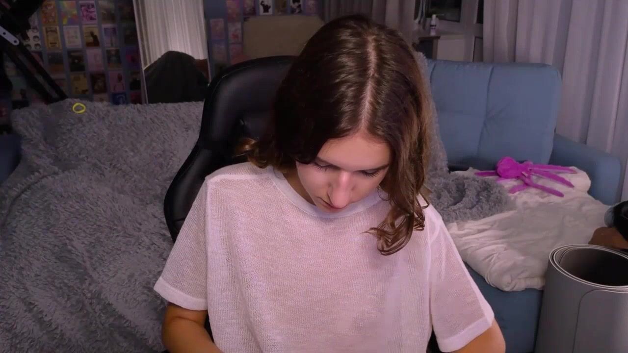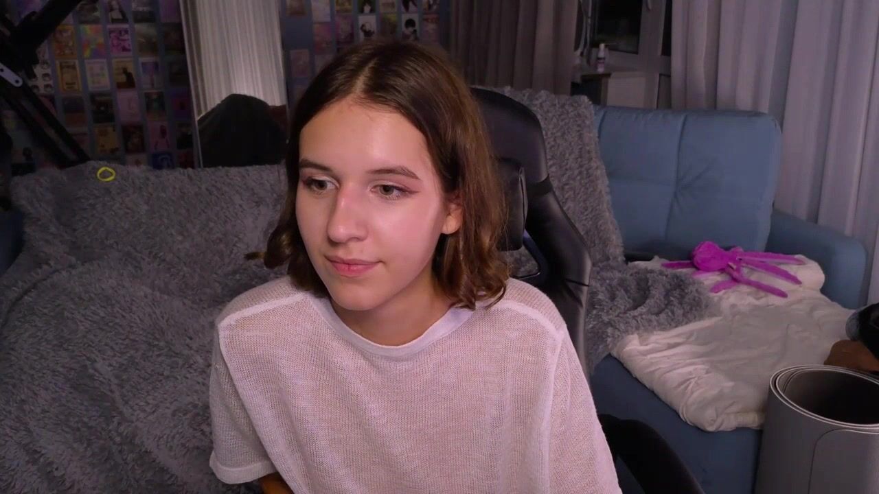 VanessaBayer2 Charming student poses in front of the camera and chats sweetly and is shy to undress in front of the camera