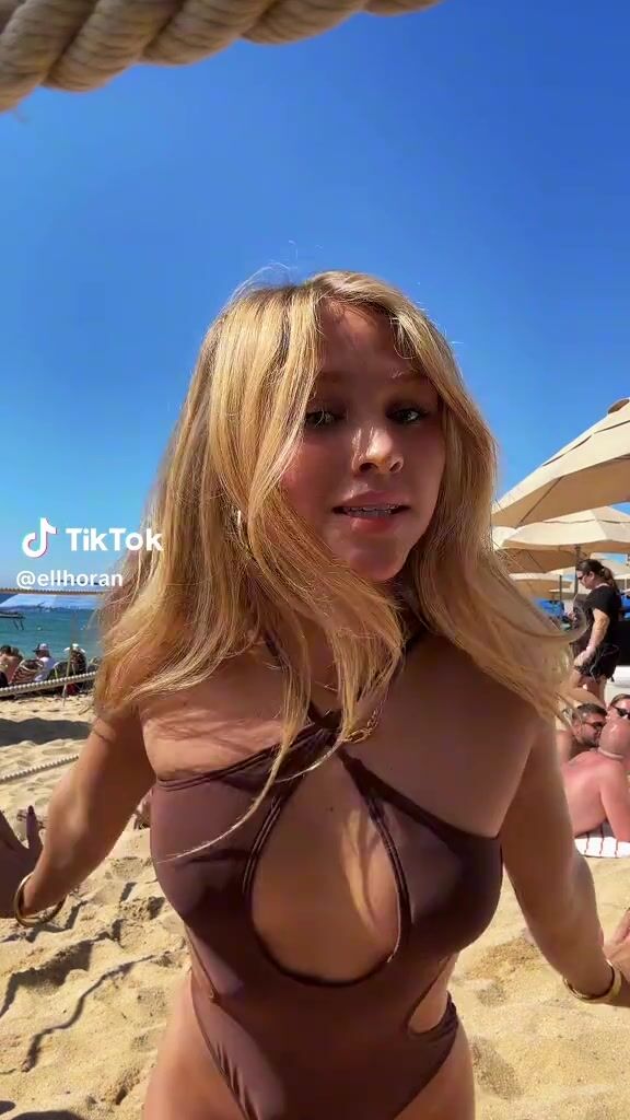 Элла Хоран - Худенькая красотка в красивом купальнике танцует на пляже перед камерой