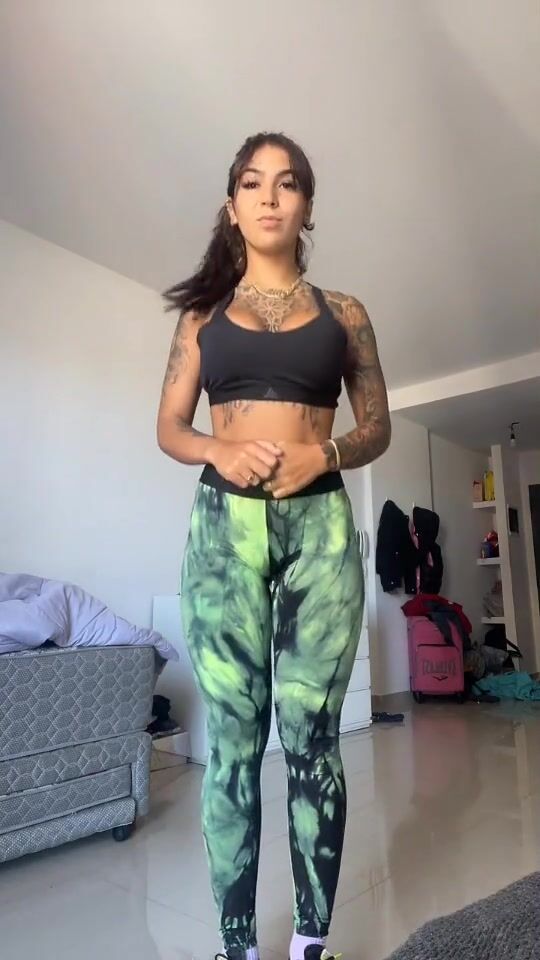 Клара Куш Латиноамериканка в спортивной форме танцует перед камерой и хвастается своей сладенькой попкой