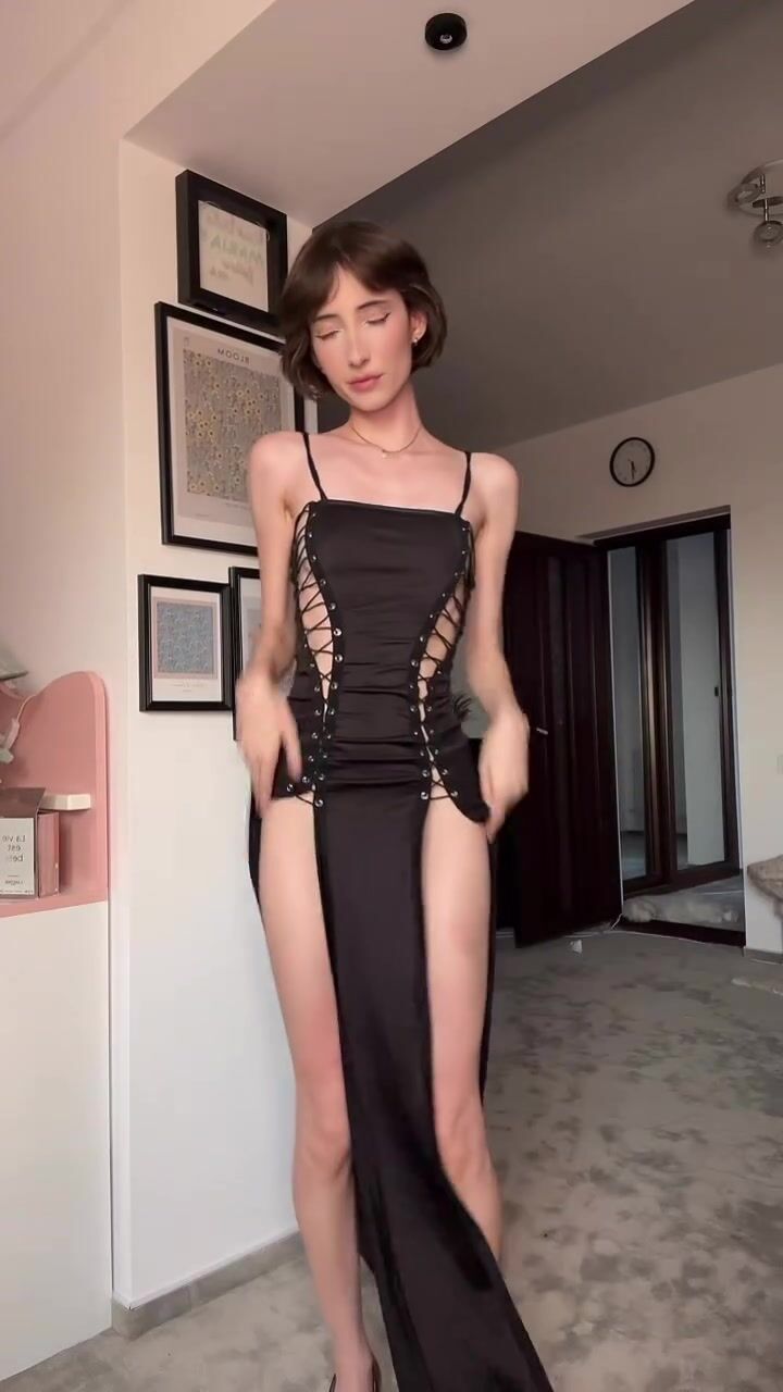annie243 1 Брюнетка в красивом платье позирует перед камерой и не хочет раздеваться перед камерой