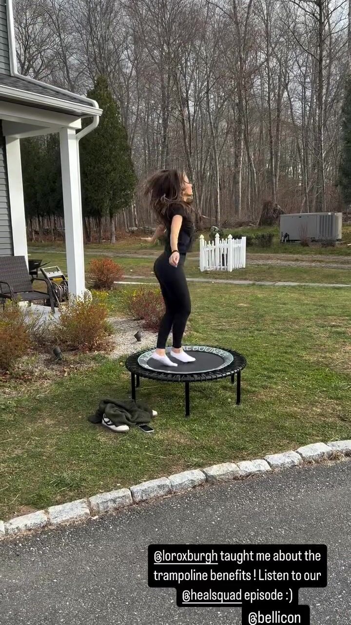 Мария Менунос - Очаровательная маленькая девочка прыгает на батуте и мило болтает.