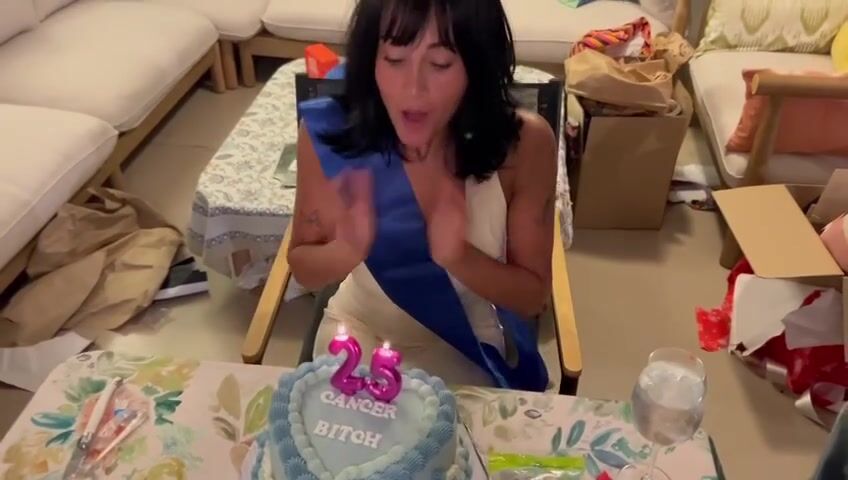 айтана оканья Очаровательная брюнетка празднует свой день рождения на камеру