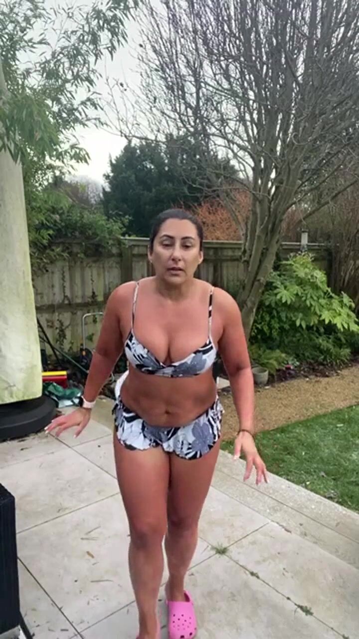 сайра хан - милфа в купальнике позирует перед камерой и мило болтает
