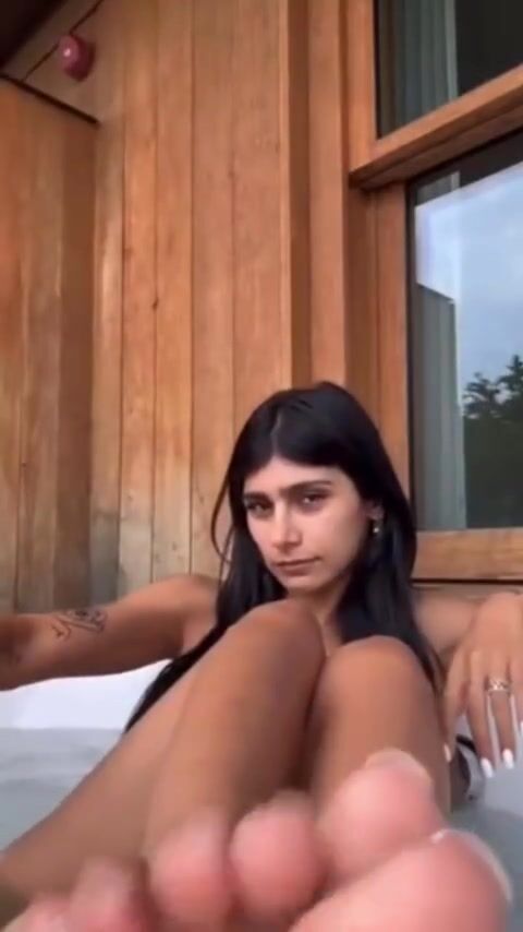 миа халифа 1 - молодая красотка демонстрирует свои сладкие ножки на камеру.