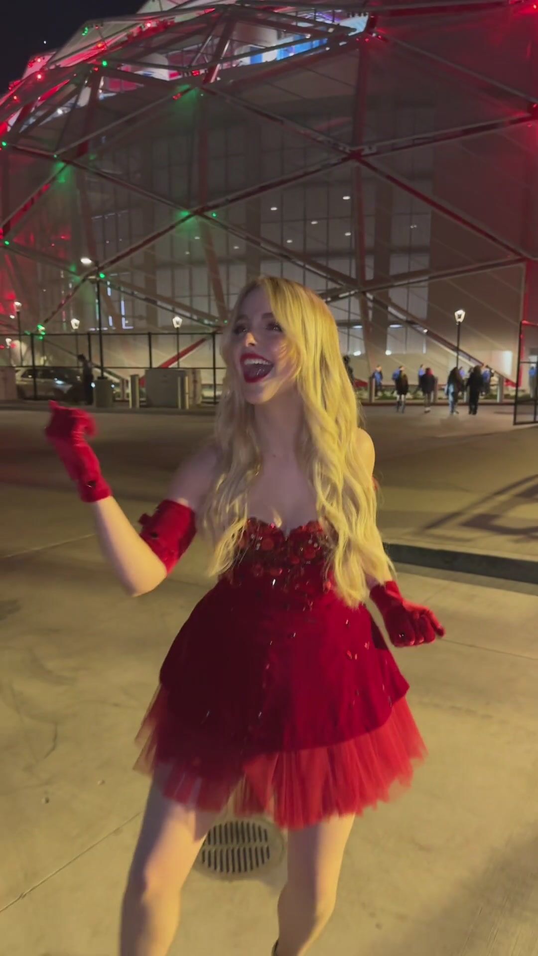 mckenna grace - Молодая красотка танцует перед камерой на улице в красивом платье