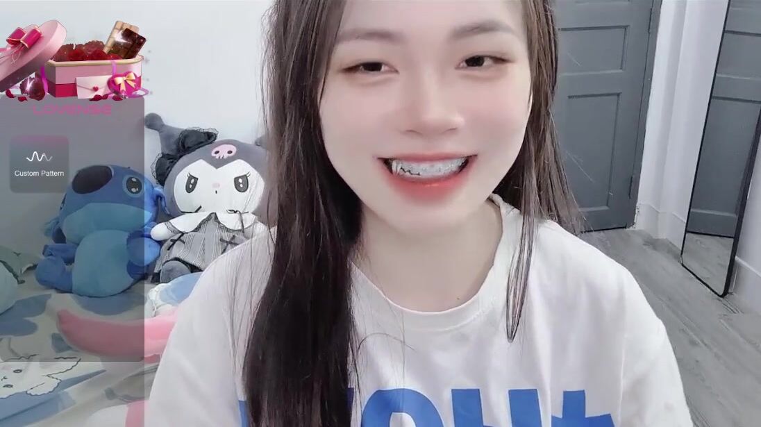 Минха Молодая худенькая азиатская девушка мило болтает и дразнится перед камерой