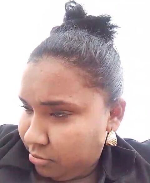 Evelyn_Sandoval A mulatto woman communicates on the street and is not afraid that someone will see her
