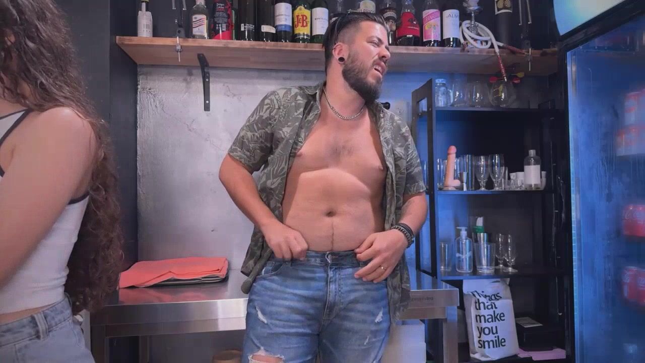 barfantasy Two babes seduce one guy and sweet talk while waiting for the guy to fuck them