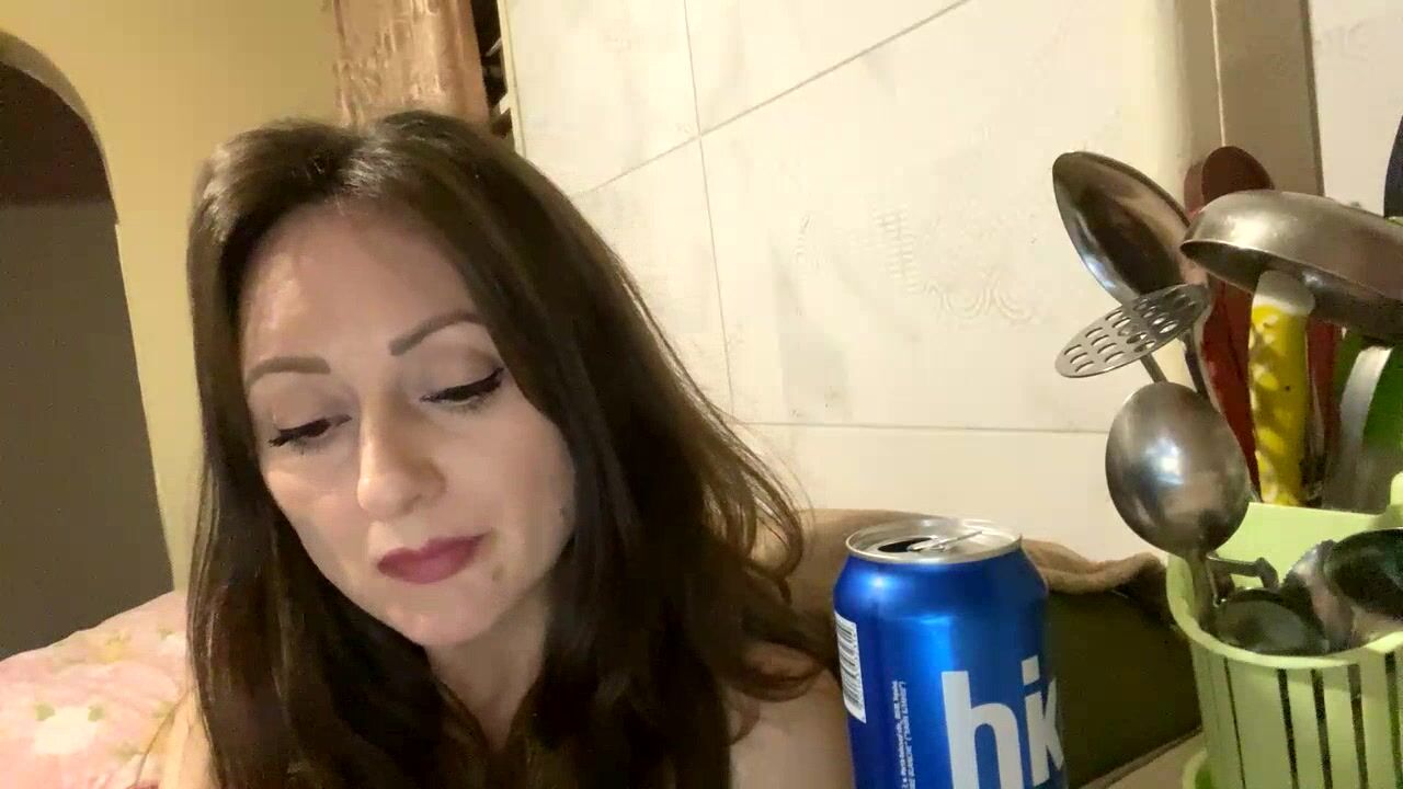 cool-lemonade - [Housewife relaxing in the kitchen and having a nice chat.