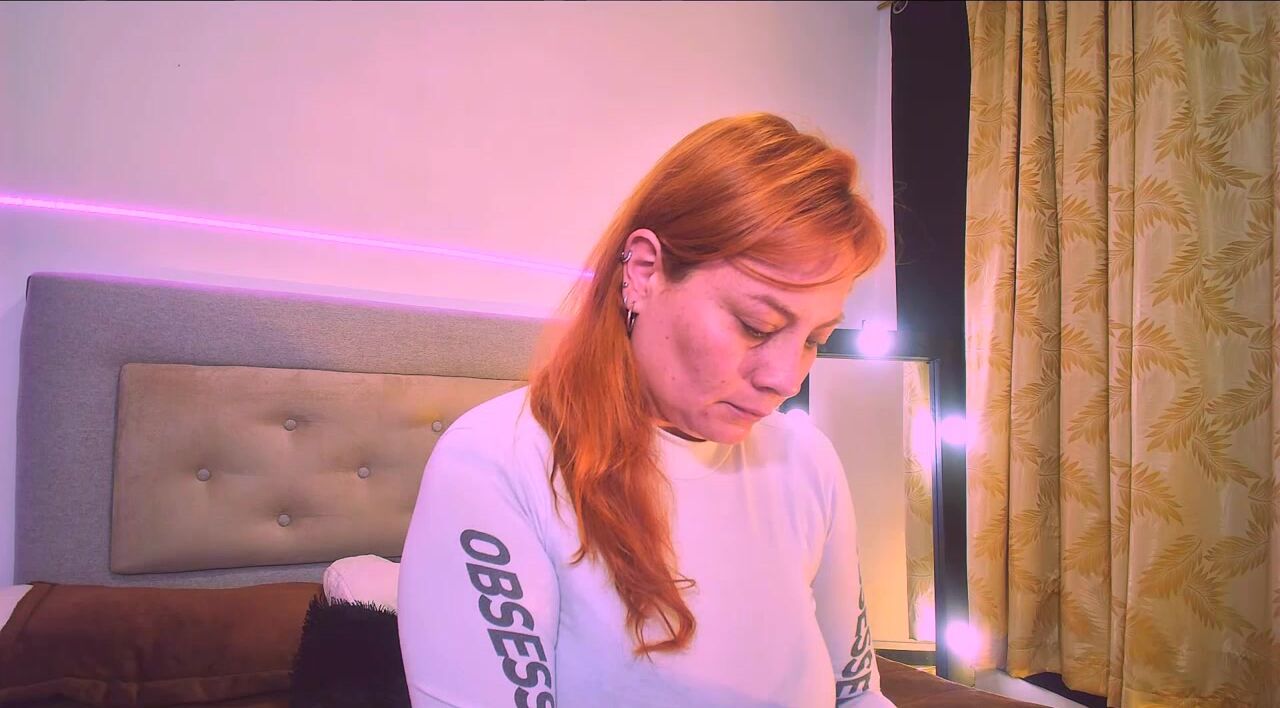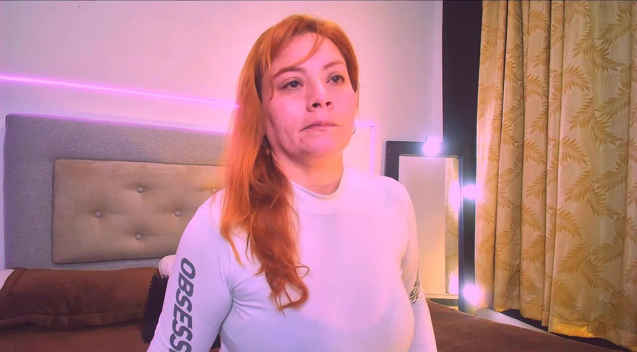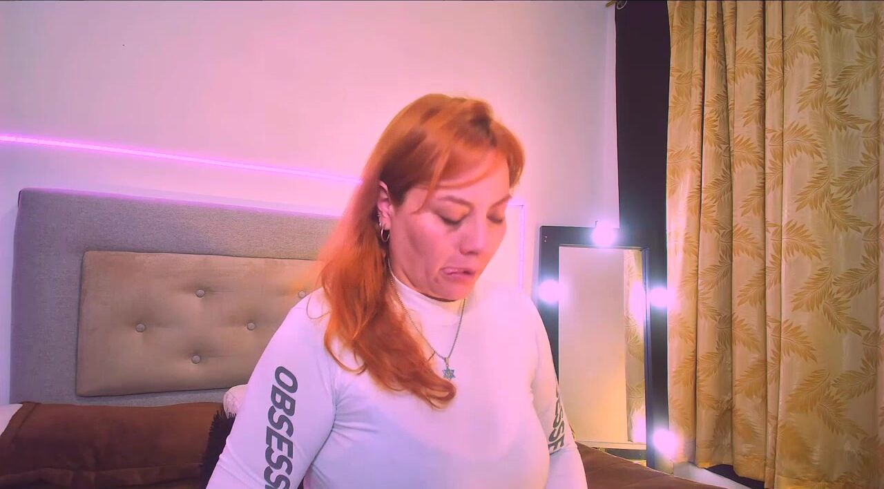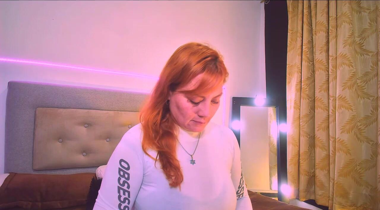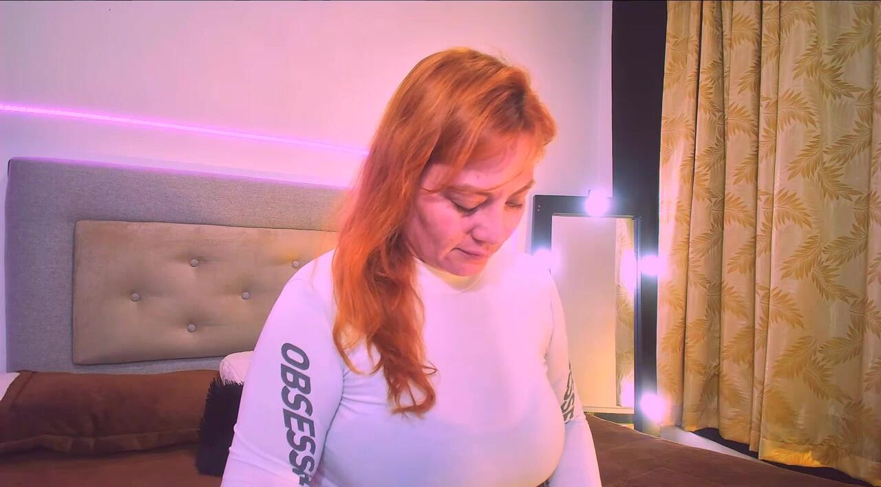 Mia_Peython Red-haired milf in clothes teasing in front of the camera sweetly chatting