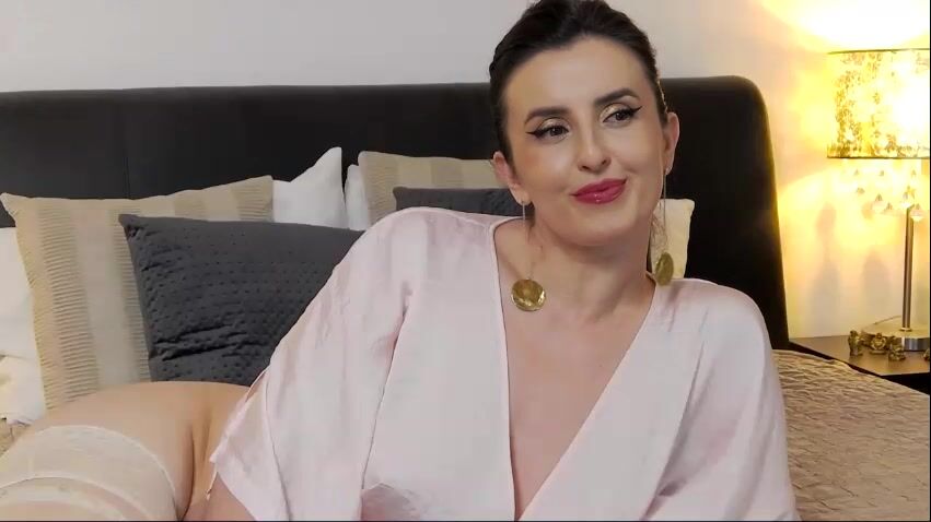 RheaAnderson - Милфа мило болтает и дразнится перед камерой в красивом кожаном костюме