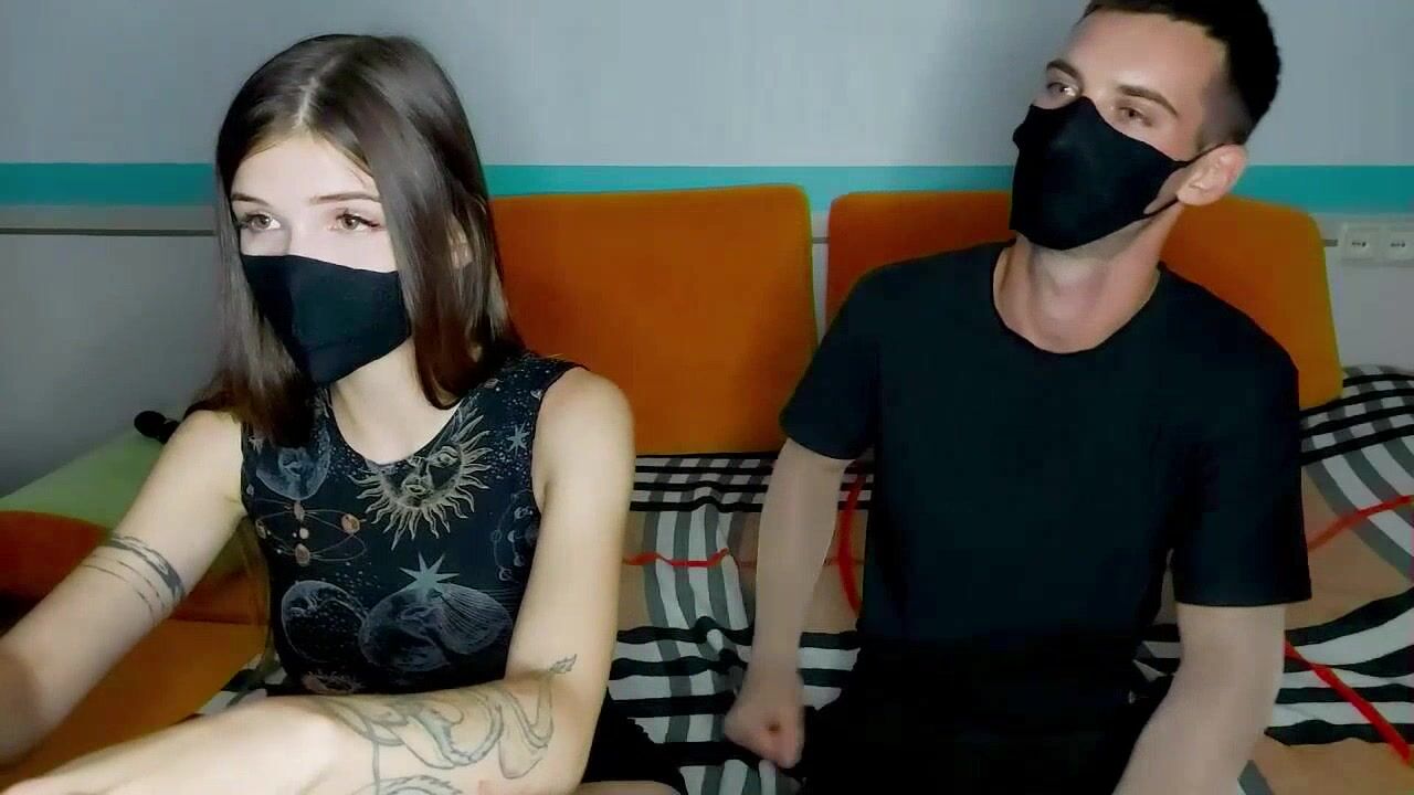 cutedodo - Молодая пара в масках сидит и болтает, стесняясь раздеться перед камерой.