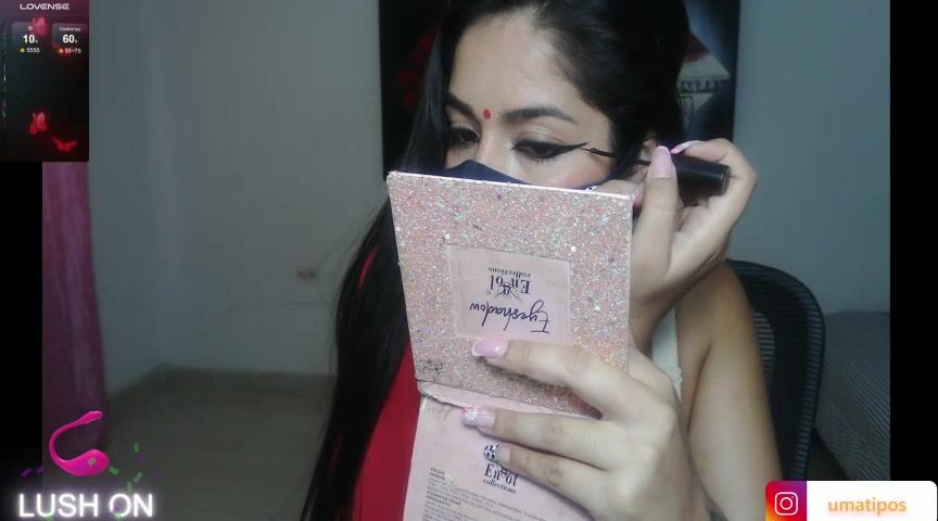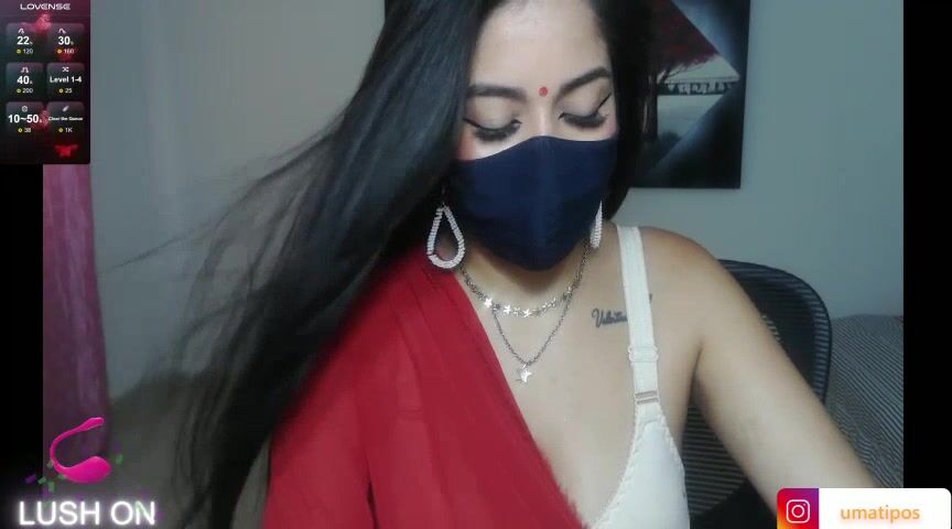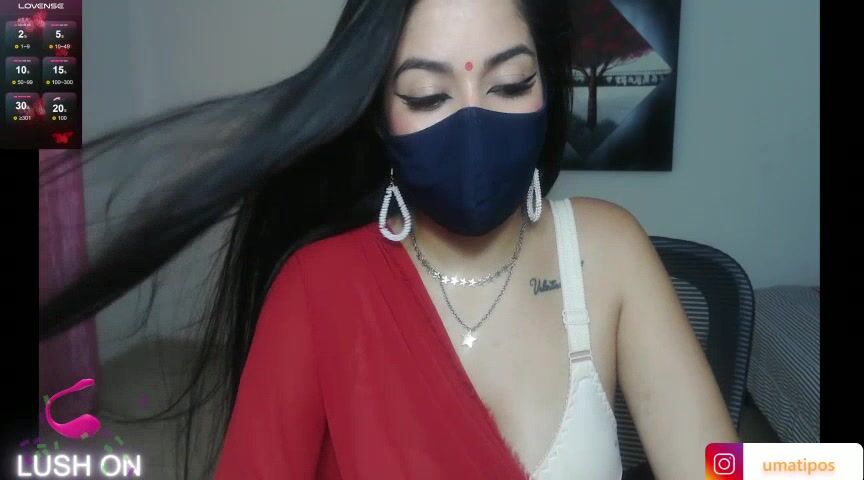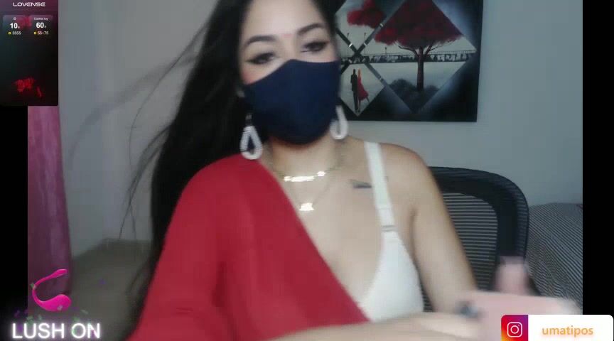umarany girl's having a nice chat with a mask over her face.