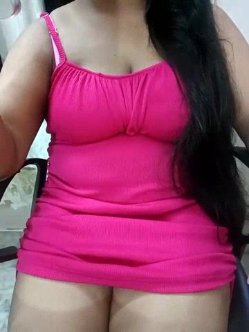 Disha_33 brunette in a beautiful pinafore is chatting nicely and does not want to undress