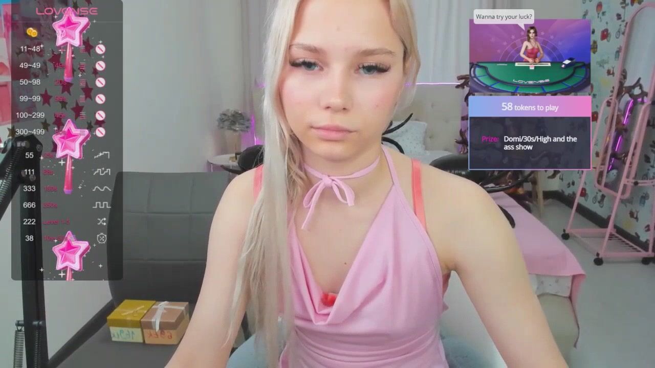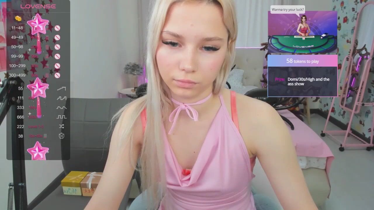 Miss_Adeline Blue-eyed young blonde girl in clothes sweetly chatting and shy to undress in front of the camera and show her small tits