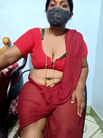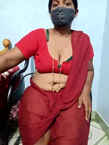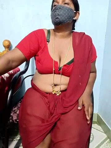Renuma An Indian woman sits chatting and doesn't want to undress in front of the camera and show her body.
