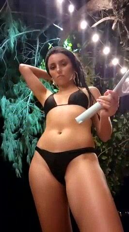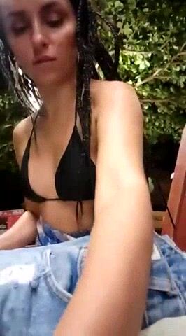 Izabella_Bella A young woman filming herself on camera in a swimsuit right on the street and not afraid that someone will see