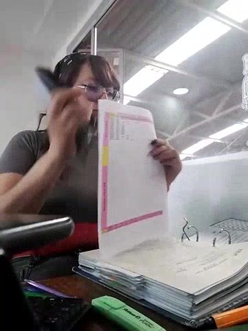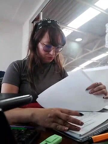 ERIS666 A secretary filming herself at work with documents and having a nice chat