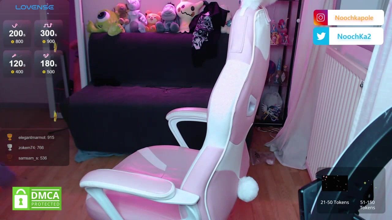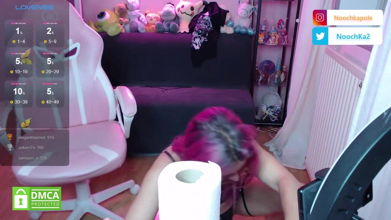 Noochka - a young girl with pink hair on a stele sweetly chatting and teasing in front of the camera.