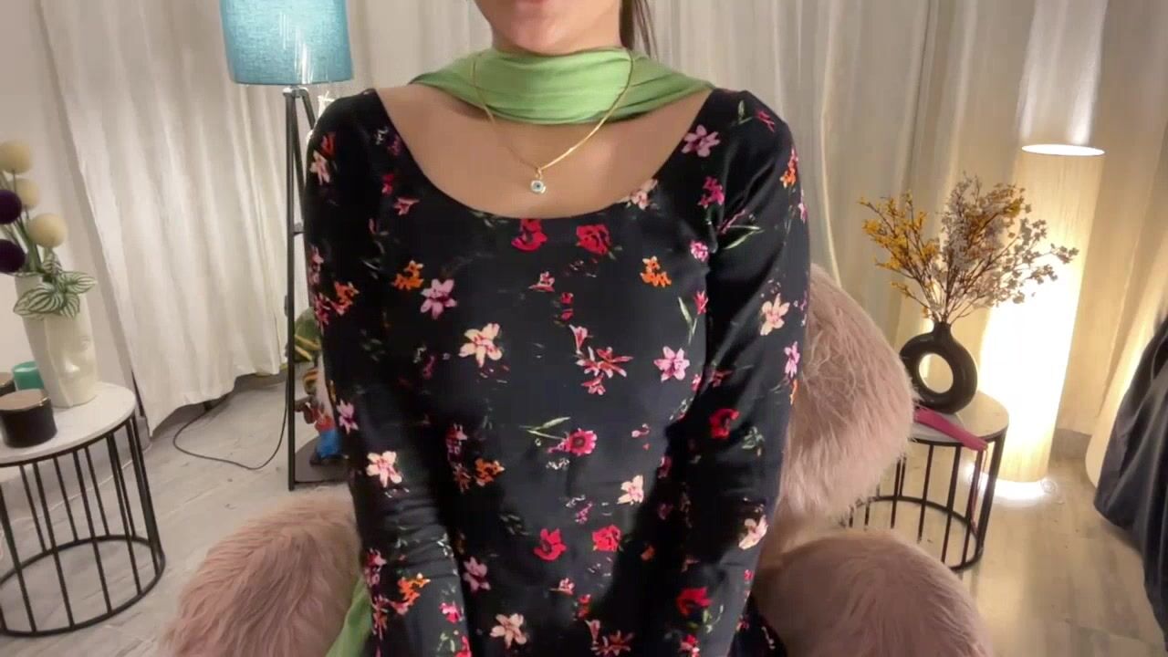 Unique-Beauty -Eye-catching babe sweetly chatting and teasing in front of the camera in a beautiful dress