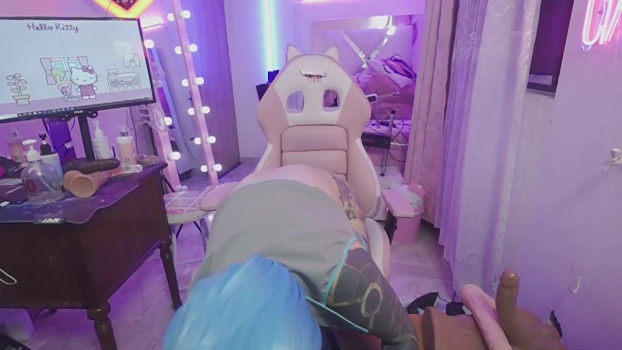 angelacianuro_ Lush babe with blue hair in tattoos sweetly chatting and teasing in front of the camera masturbating her pussy with a vibrator