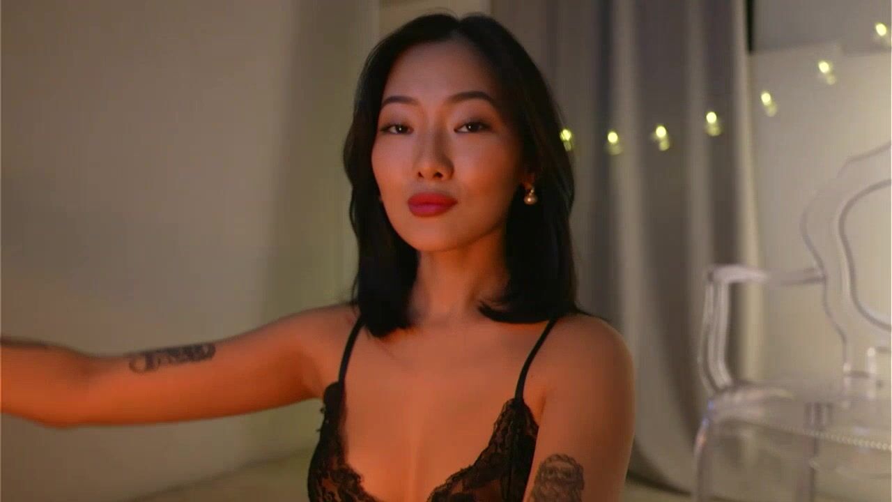 dina_coy Charming young Asian girl sweetly chatting and teasing in front of the camera