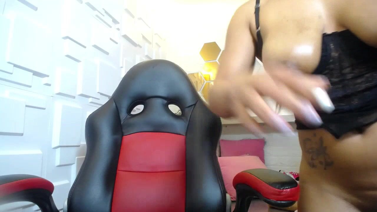 Hannagarces Charming mulatto with big tits poses half-naked in front of the camera and gets pleasure from lavens in her pussy